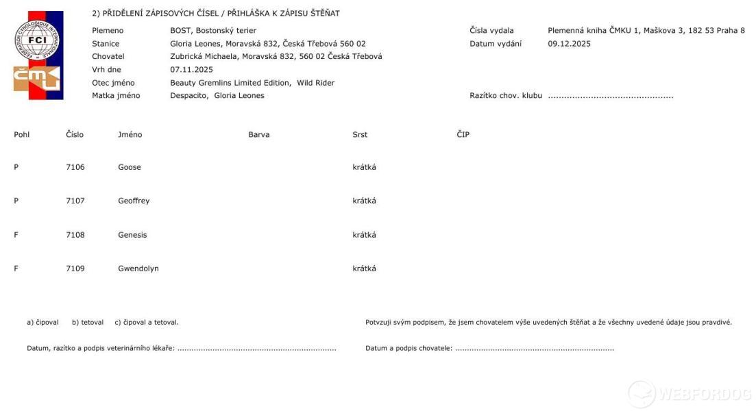 | počet štěňat: | 2 psy / 2 fenky |