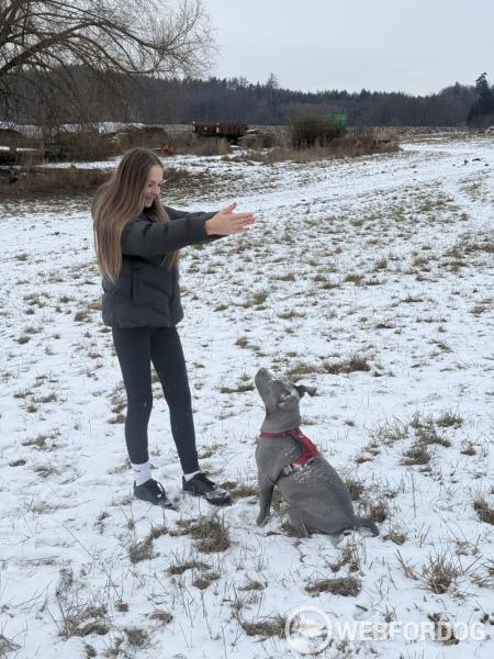 Základní povely jako sedni, lehni, ke mně zvládá, ale je potřeba důslednost a další vedení. Je vhodný spíše pro někoho, kdo už má se psy zkušenosti.