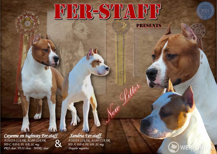Chovateľská stanica Fer-staff s dlhoročnými skúsenosťami ocenená slovenskou kynologickou jednotou medailou v kategórii chov ponúka k rezervácii šteniatka AST s PP. Šteniatka vyrastajú v domácom prostredí, budú zvyknuté na bežný ruch domácnosti, pri odbere budú čipované, očkované, odčervené , s EU pasom a rodokmeňom. Pre viac informácii nás prosím kontaktuje mailom alebo telefonicky.